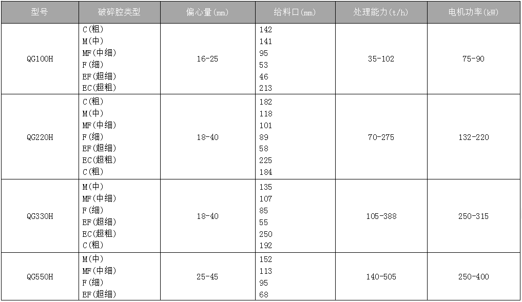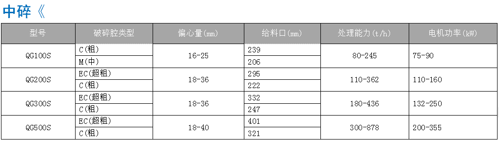 QG 系列單缸圓錐破碎機(jī)具有高破碎率、 高 產(chǎn) 品 質(zhì) 量 和 運(yùn) 行 穩(wěn) 定 特 性 , 能 夠 一 機(jī) 多 用 , 適 用 各 種 工 況 及 破 碎 物 料 , 可 滿 足 中 碎 、 細(xì)碎及超細(xì)碎的破碎要求 , 針對河卵石 破碎可直接做粗級破碎使用
